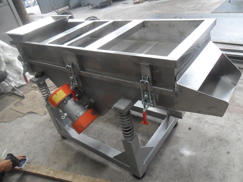 本機(jī)上部采用快拆式手柄,把整機(jī)連成一個(gè)整體,上蓋全密封、有效防止物料在過篩時(shí)由于振動(dòng)而產(chǎn)生粉塵飛揚(yáng)。篩體下部安裝振動(dòng)電機(jī),有效保證了物料的結(jié)構(gòu)緊湊,下部采用彈簧減振,使整機(jī)在平穩(wěn)狀態(tài)下工作。下面底座采用可調(diào)式,可調(diào)節(jié)正在過篩時(shí)的篩面傾斜角度,根據(jù)物料特性以取得佳過篩效果。