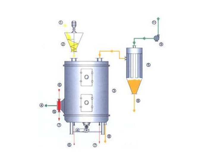 ◎常壓型:由于設(shè)備內(nèi)氣流速度低,而且設(shè)備內(nèi)濕度分布上高下低,粉塵很難浮到設(shè)備頂部,所以頂部排濕口排出的尾氣中幾乎不含有粉塵。